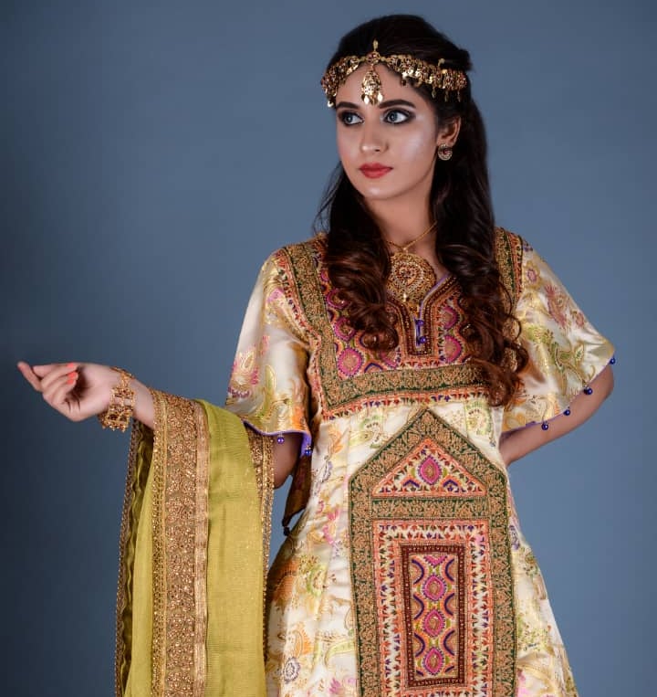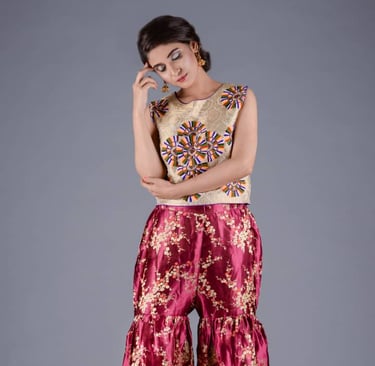 Royal maroon silk featuring authentic Balochi hand-embroidery.
