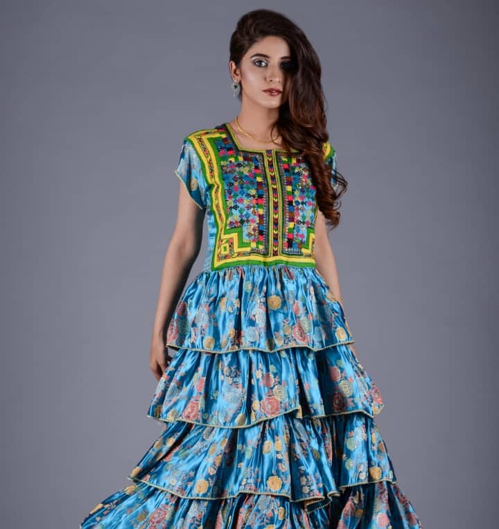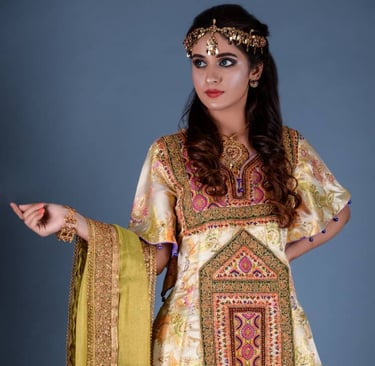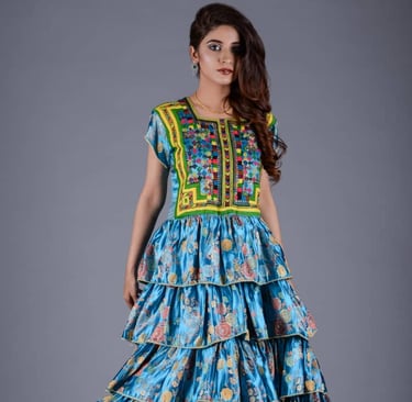 Forest green silk adorned with intricate silver hand-embroidery. A sophisticated masterpiece celebrating the timeless beauty of Balochi craftsmanship.